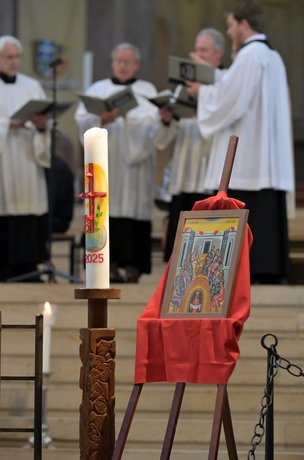 Zu Beginn der Pfingstvesper erinnerte Bischof Dr. Karl-Heinz Wiesemann an das Erste Ökumenische Konzil von 325 n. Chr., das er als „epochale“ Wegmarke der Kirchengeschichte würdigte. Man feiere diese Vesper „im Gedenken an das Erste Ökumenische Konzil der Christenheit“, das vor genau 1700 Jahren in Nicäa stattfand.