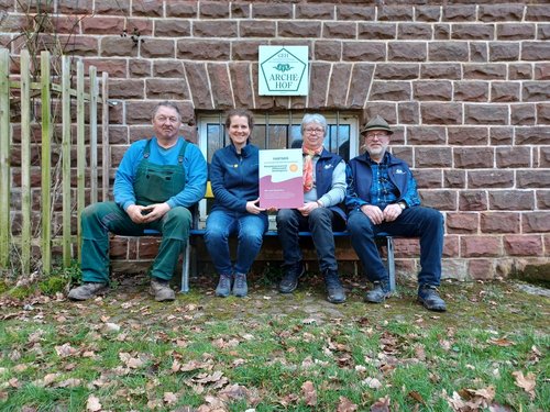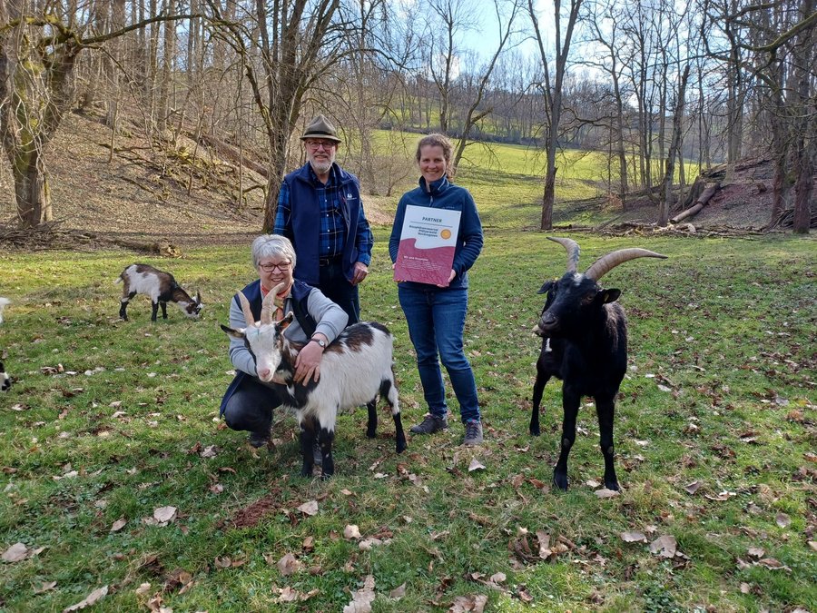 Aufgrund seines umfassenden Engagements hat sich der „Arche-Hof am Rosenberg“ als Partner-Betrieb des Biosphärenreservats Pfälzerwald-Nordvogesen zertifiziert. Damit gehört der Hof nun zu einem Netzwerk aus rund 70 Betrieben verschiedenster Branchen, die sich vor allem hinsichtlich Nachhaltigkeit und Qualität sowie Regionalität der Produkte und Dienstleistungen auszeichnen. Biosphärenreservats-Direktorin, Dr. Friedericke Stakelbeck, überreichte das offizielle Partnerschild vor Ort in Waldfischbach-Burgalben. Irene Schwarz und Jürgen Edrich erhoffen sich von der künftigen Zusammenarbeit im Netzwerk Synergie-Effekte: „Der Hof liegt mitten im Biosphärenreservat. Da war es naheliegend uns als Partner zu bewerben, um künftig noch breiter über die Arche-Projekte zu informieren und mit den Menschen ins Gespräch zu kommen.“